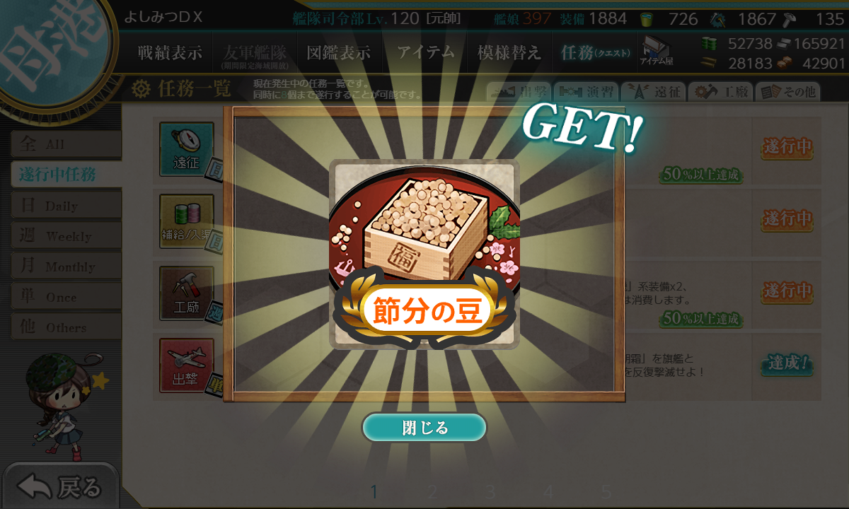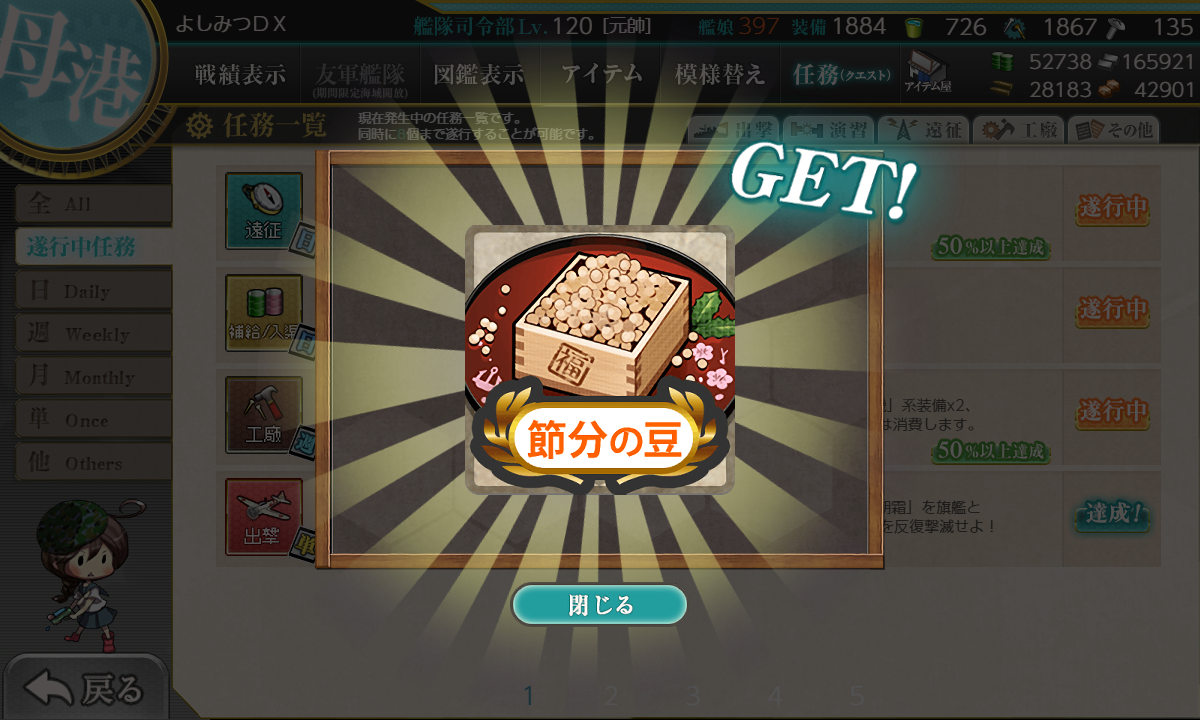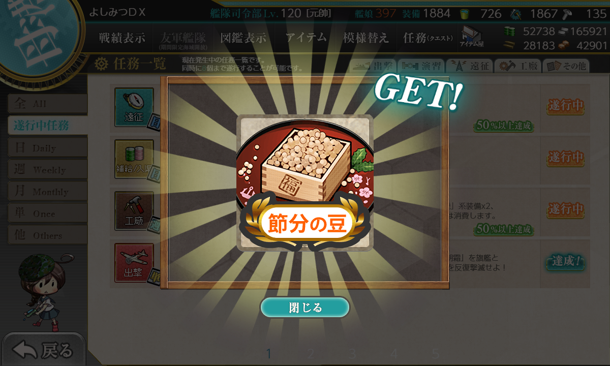 これは節分任務をクリアして豆を集めるミニイベントです。。