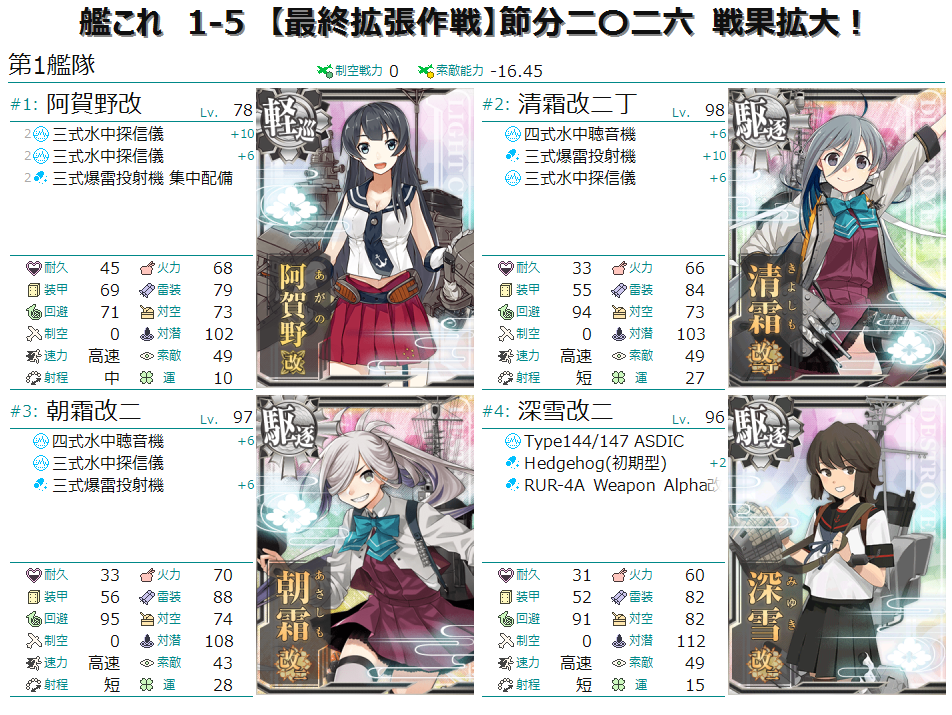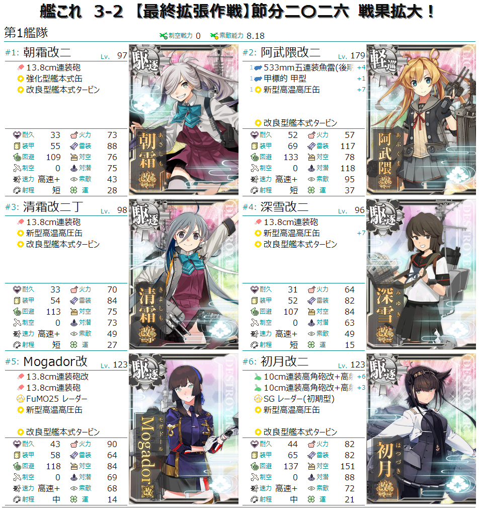 「阿賀野」「酒匂」「瑞穂」「如月」「深雪」